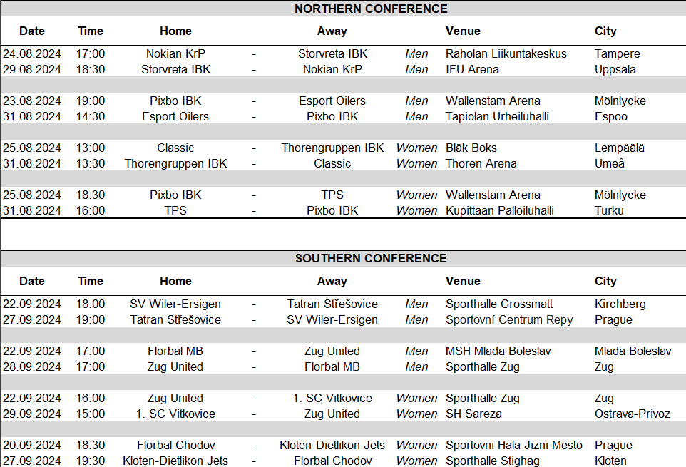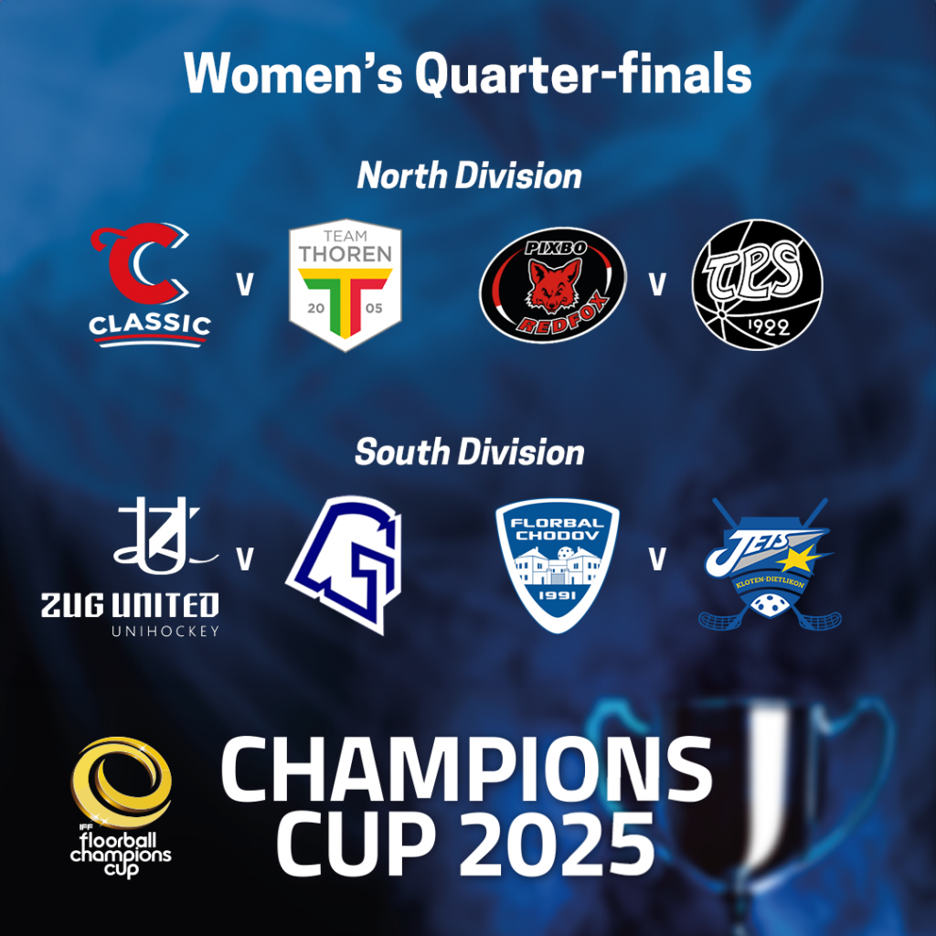 Tatran Střešovice are the defending Czech and Champions Cup Champions and they qualified for the 2025 Champios Cup by winning the Czech Cup. In the quarter-finals they will meet the Swiss play-off runner-ups SV Wiler-Ersigen. Mladá Boleslav will be returning to Champions Cup after last seen in 2019, this time they qualified for being play-off runner-ups. They will be challenged by Zug United who will be playing in their first ever Champions Cup and who are the reigning Swiss champions.